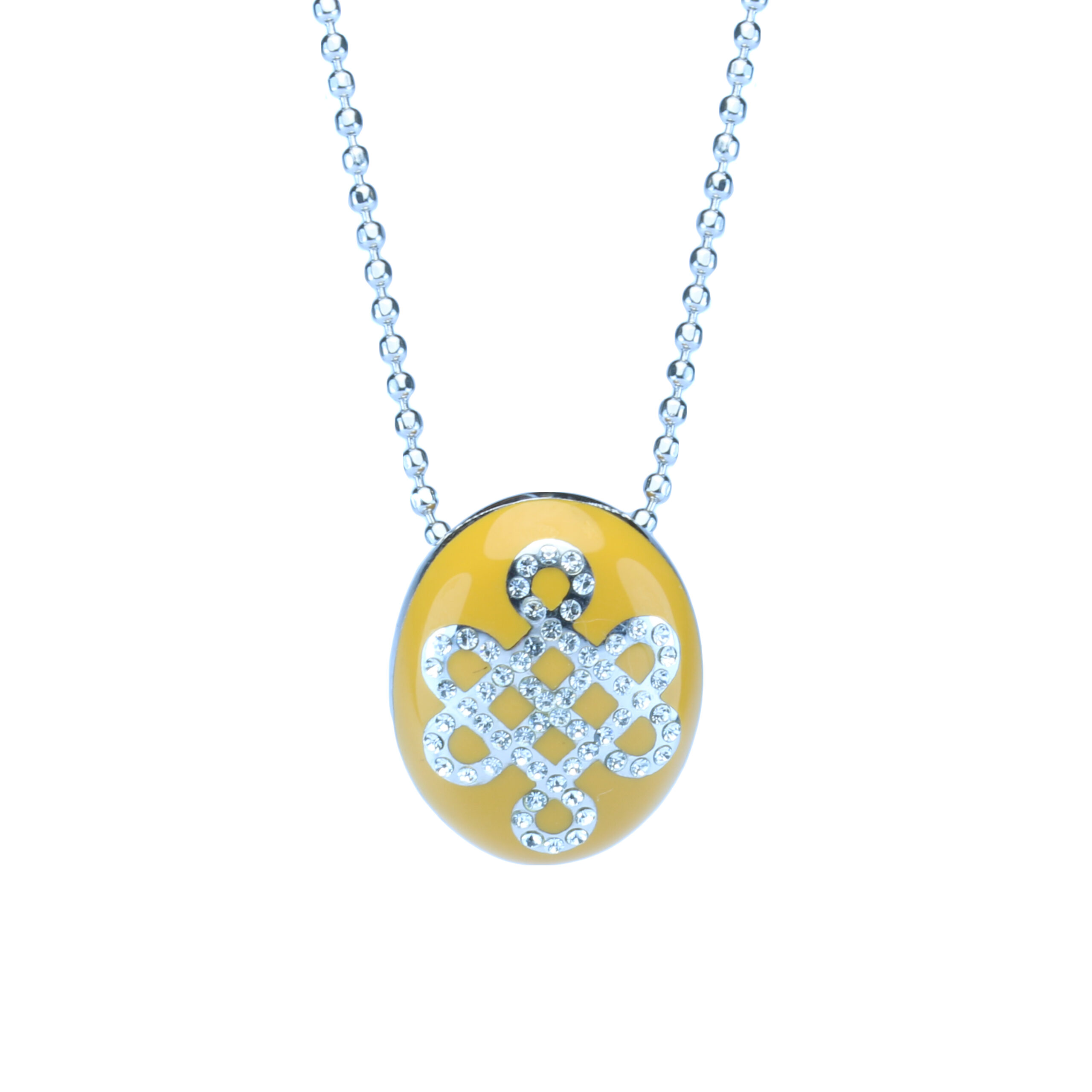 Wear our trendy Enamel Crystal Mystic Knot pendant for good relationships, good fortune, health & wealth luck!